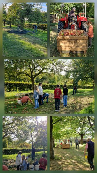 Bei der diesjährigen Apfelernte am 2. Oktober halfen der “Grüngruppe“ der Dorfwerkstatt mehr als 30 Kinder und Eltern bei herrlichem Wetter. Schade, dass es dann am 4. Oktober, dem Press-Tag, regnete. Trotzdem gab es einige kleine und große Helfer, die mit anpackten und so konnten 700 Liter Saft gepresst und in 3 Liter Packs abgefüllt werden. Als die Arbeit beendet war, zeigte sich dann doch die Sonne noch einmal.